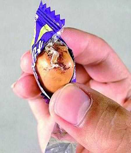 Hôm 5/7, một người đàn ông ở Bắc Kinh đã mua kẹo nhãn Eclairs được công ty sản xuất bánh kẹo Cadbury sản xuất – đây là thương hiệu thuộc sở hữu của Kraft Foods. Khi khách hàng này mở chiếc kẹo đã phát hiện hiện tượng bất thường trên bề mặt.
