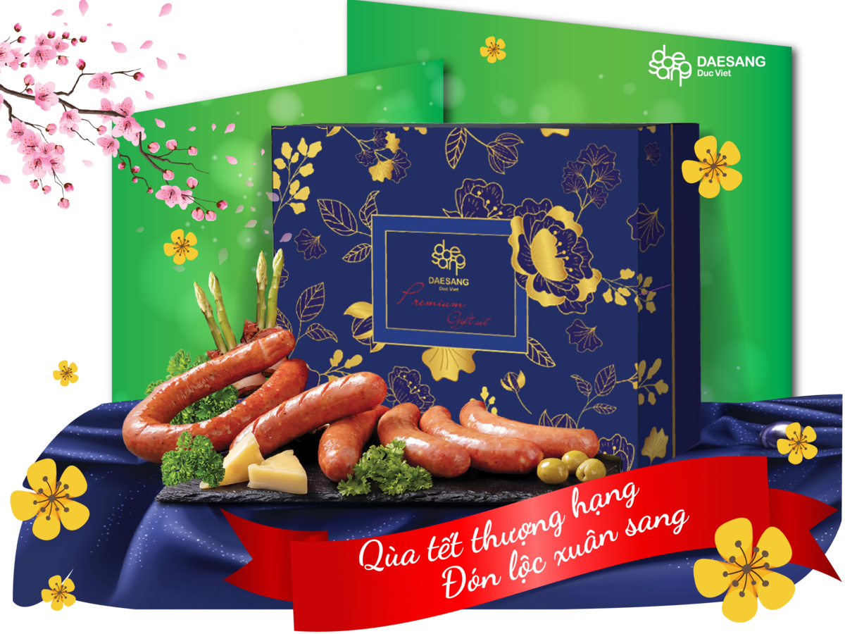 Với giá 550.000 đồng/set quà, Cát tường là sự chọn lọc từ các sản phẩm đặc biệt cao cấp của Đức Việt như: xúc xích King BBQ, xúc xích Kielbasa. Với nhân thịt xay thô kết hợp cùng công thức độc nhất, gia vị và nguyên liệu nhập khẩu, xúc xích Kielbasa mang đến cho người thưởng thức sự mê đắm về cả hương vị và màu sắc. Một chút vị tiêu cay nhẹ hòa cùng vị ngọt của nhân thịt và các gia vị đặc biệt mang đến sự mới lạ, hấp dẫn cho người thưởng thức.