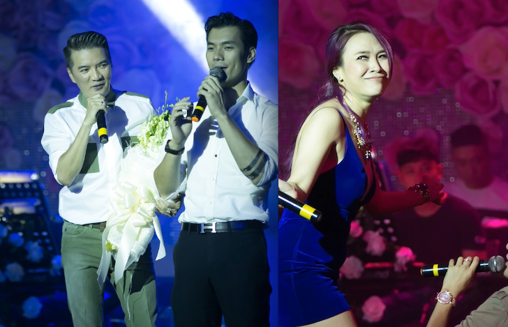 Nhan Phúc Vinh ngẫu hứng song ca cùng Mr Đàm ca khúc 'Say tình' tặng khán giả tại phòng trà trong đêm nhạc với Mỹ Tâm.