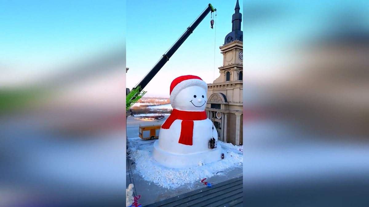Người tuyết khổng lồ cao 19m biến thành phố Trung Quốc thành xứ sở thần tiên