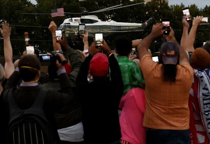 Một số người đã chờ cả ngày trước Trung tâm Quân y Walter Reed ở Bethesda, bang Maryland để được thấy Tổng thống Donald Trump và hy vọng ông lại xuất hiện trên chiếc chuyên xa diễu qua họ một lần nữa như đã làm ngày hôm trước. Tuy nhiên, họ còn hạnh phúc hơn khi Trump lên trực thăng Marine One và bay qua đám đông để trở về Nhà Trắng.
