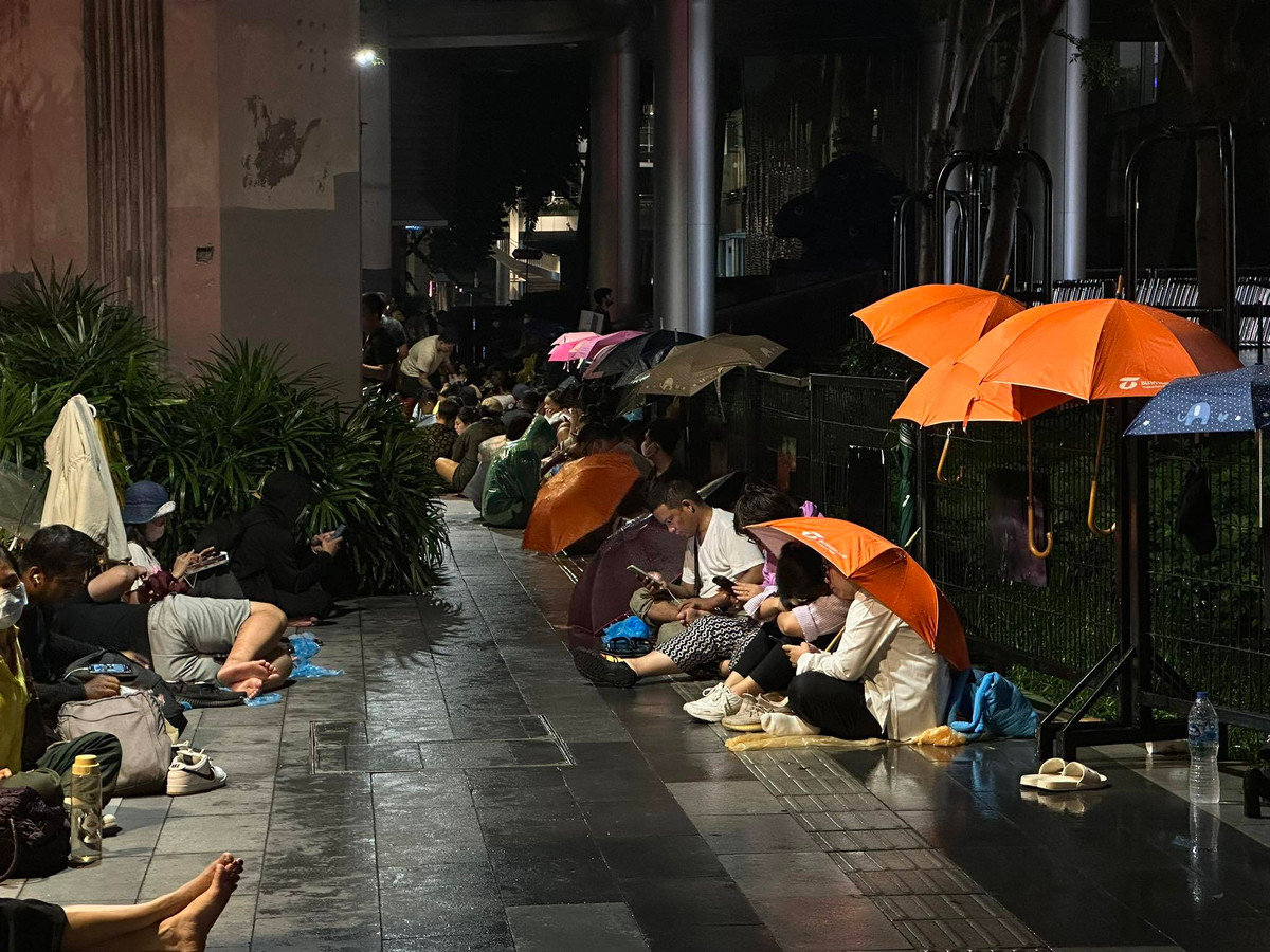 Cơn mưa nặng hạt gây khó khăn cho những người chờ mua iPhone 15.
