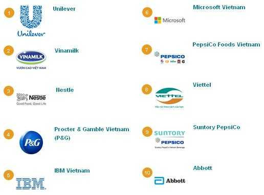 Ngoài ra trong top 10 của những nhà tuyển dụng hàng đầu Việt Nam còn có những cái tên khá quen thuộc như Nestle Vietnam, P&G (Procter&Gamble Vietnam), IBM Vietnam, Microsoft, Pepsico...