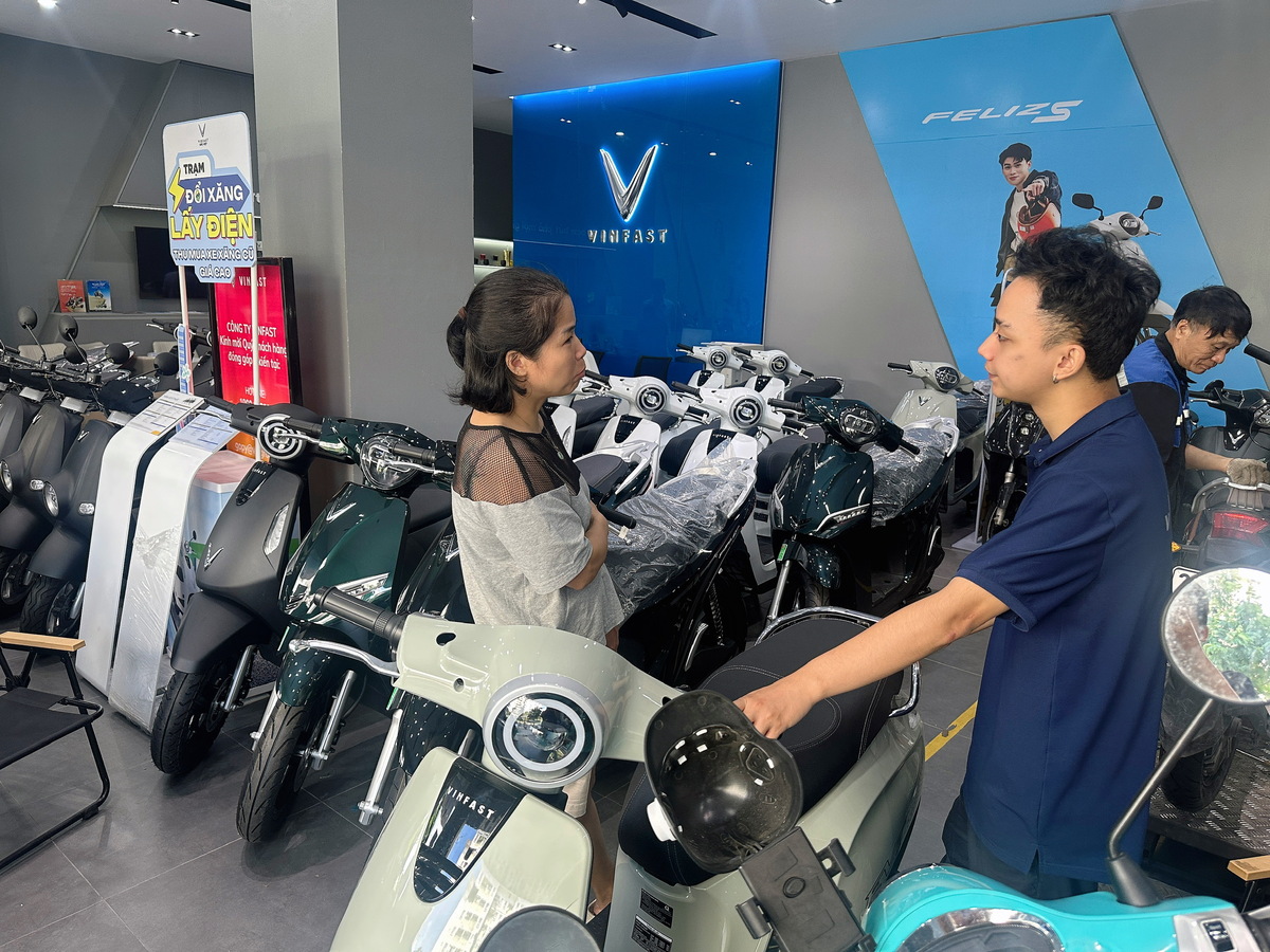 Xu hướng mua xe máy điện còn thấy rõ trong việc người tiêu dùng Việt Nam "đổi xăng lấy điện". Ghi nhận tại VinFast Bắc Việt, với các chương trình đổi xe xăng sang xe điện, đại diện cửa hàng cho biết đã thu hút tới 140 khách hàng chỉ trong 2 tuần nhờ chính sách thu xe cũ giá tốt và quà kèm theo.