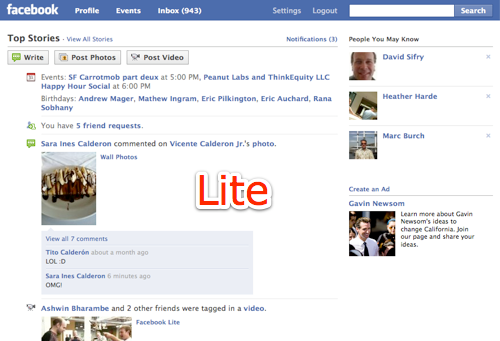| Giao diện làm việc Facebook Lite trông khá giống phiên bản web vào năm 2009. |