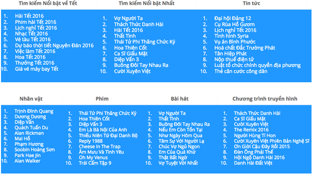 Những tìm kiếm nổi bật nhất Tết Nguyên Đán 2016 trên Google