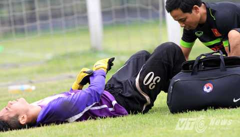 | Hoài Anh gặp chấn thương trong một buổi tập (Ảnh: VSI) |