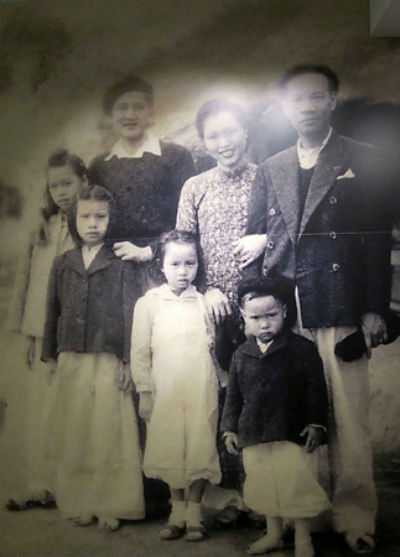 | Cả nhà chụp ảnh kỷ niệm cùng anh Nguyễn Huy Phan - sinh viên y khoa, con nuôi của ông Huyên, bà Ngọc. Ảnh chụp tại Thanh Thúy, Phú Thọ, năm 1947. |