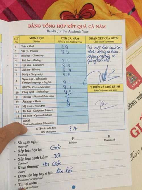 Bảng điểm “cực đẹp” của Phương Mỹ Chi
