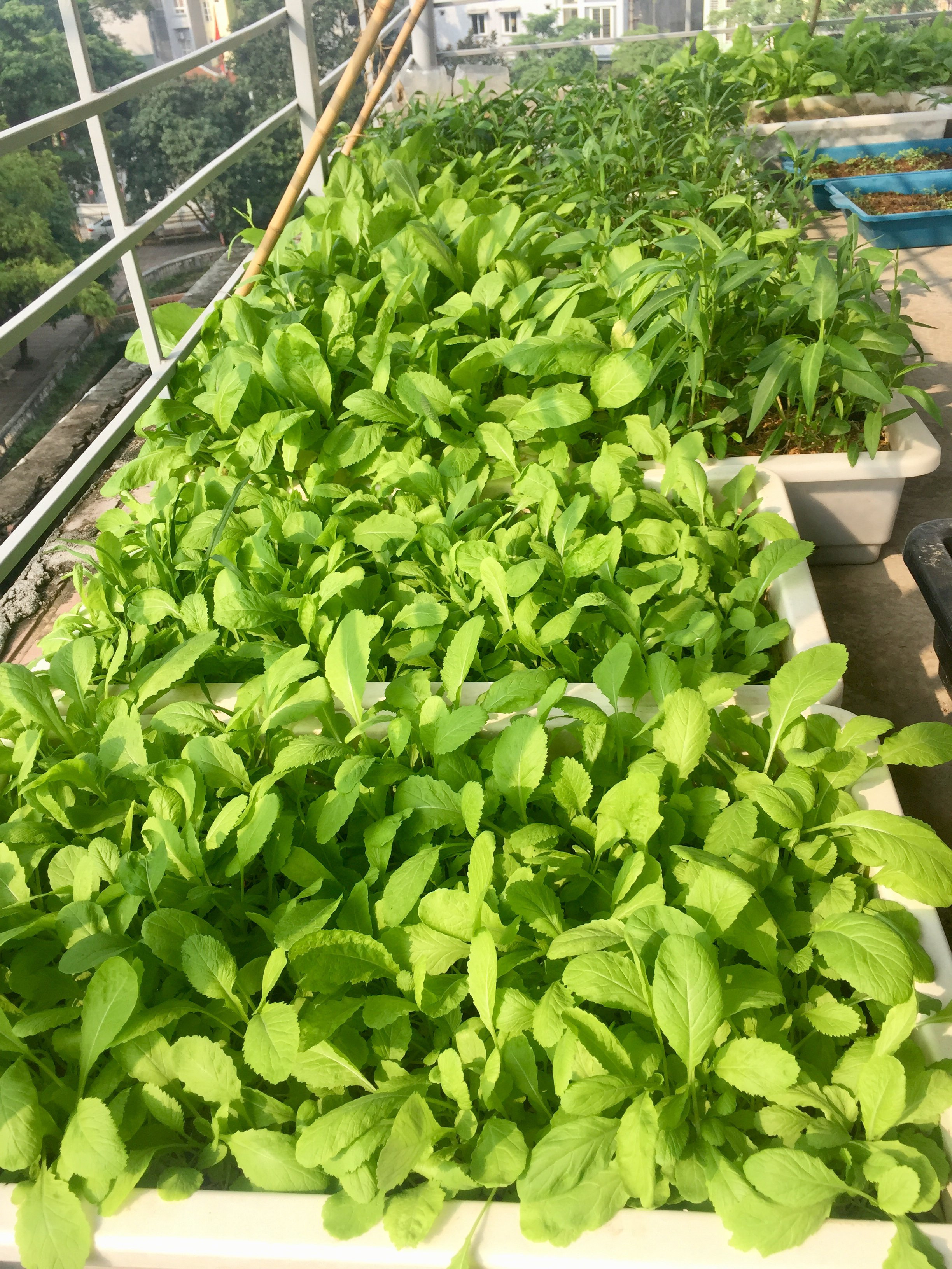 Hiện tại vườn rau của anh Lân đang phát triển rất tốt. Mỗi lần bố mẹ từ dưới quê lên chơi đều ngạc nhiên bởi vườn rau của con trai còn tốt hơn ở quê.
