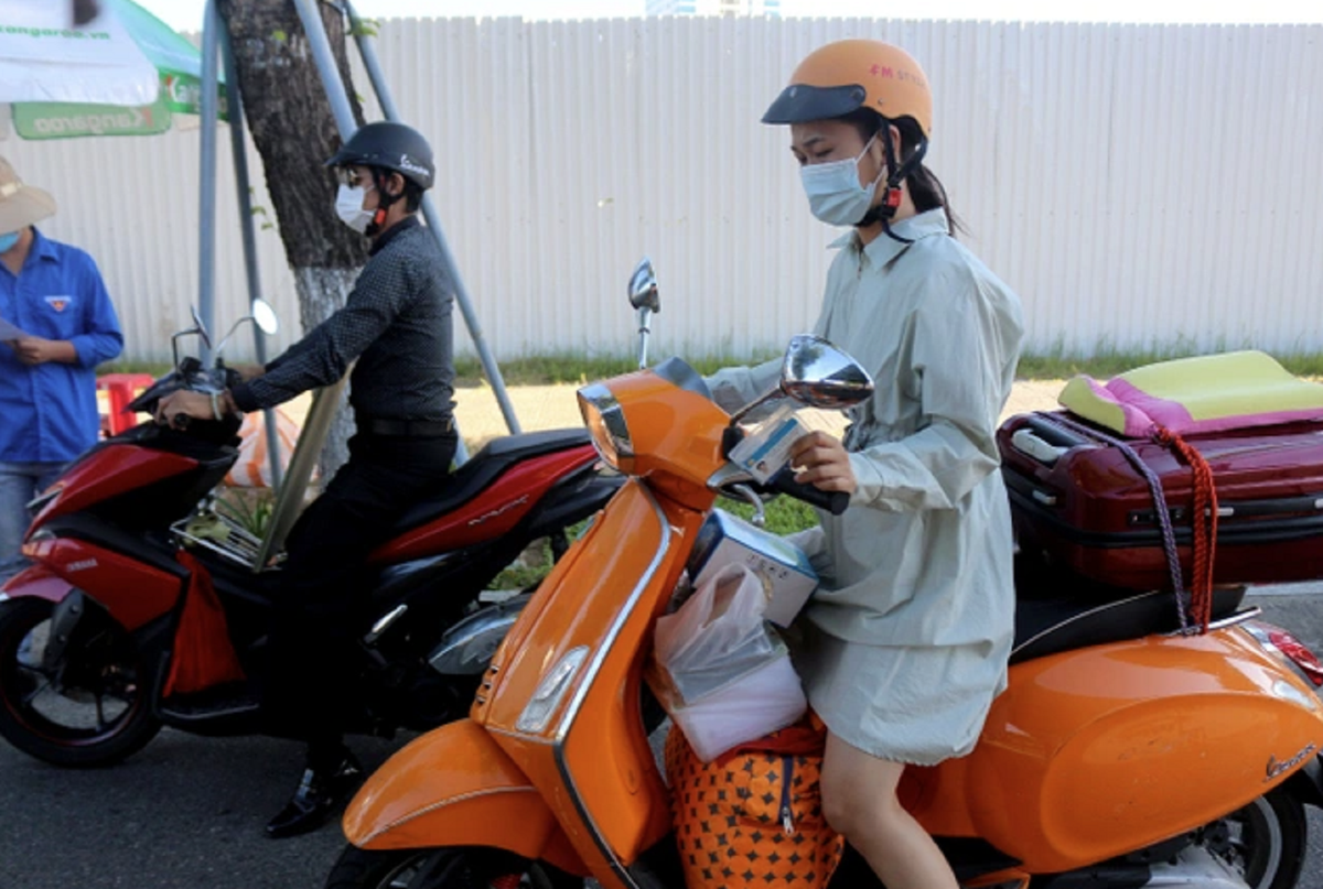 Không nên treo vật nặng trên tay lái xe máy mà nên chằng buộc phía sau để đảm bảo an toàn. (Ảnh minh họa).