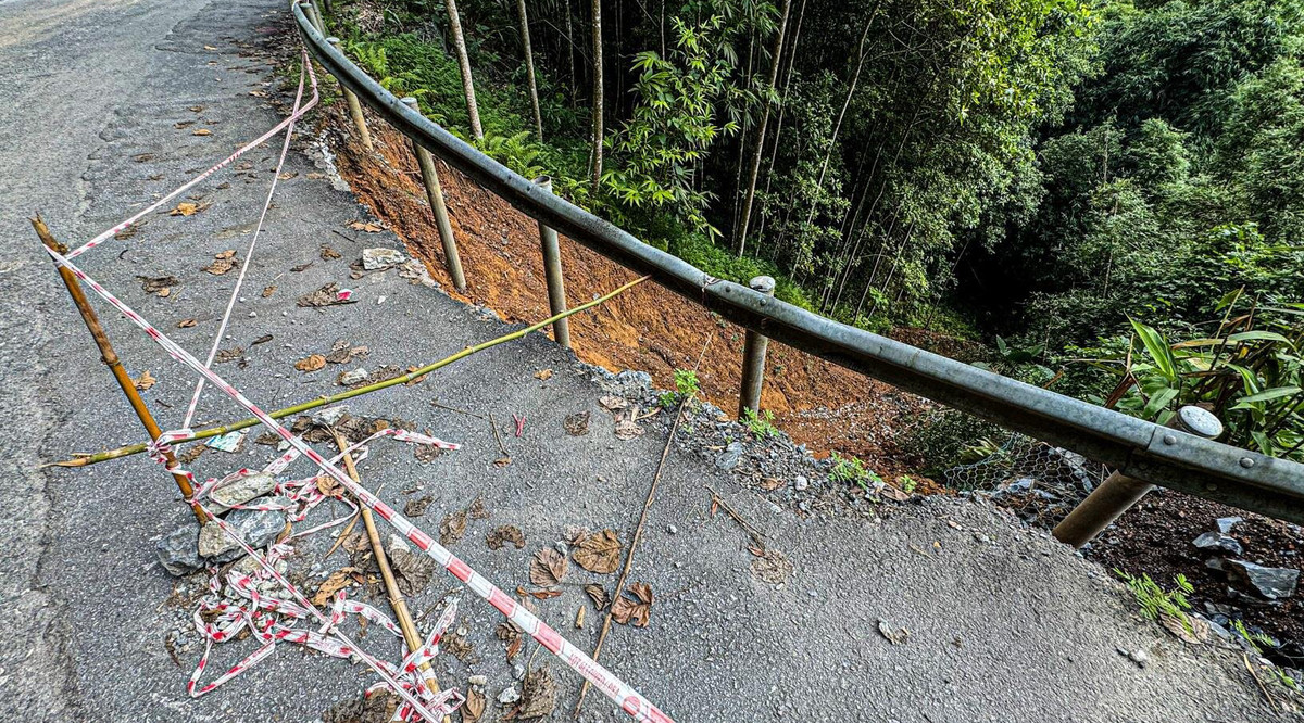 Trên khoảng 4 km tuyến đường này đã xuất hiện bốn điểm sạt lở. Nhà chức trách cắm biển cảnh báo, căng dây trong thời gian chờ khắc phục.