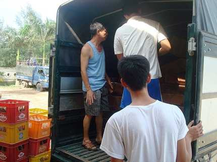 Xe chạy theo hướng từ hướng thị trấn Nông trường Việt Trung về TP. Đồng Hới, trên xe ngụy trang bằng nhiều két bia, nước ngọt ở phía sau.