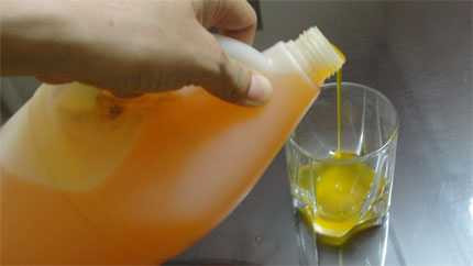 Nước cốt cam được rót ra đặc sánh, nồng nặc mùi cam.