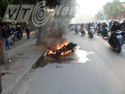 | Một trong những vụ cháy nổ xe máy trong khi đang lưu thông trên phố đông người. (Ảnh: VTC News) |