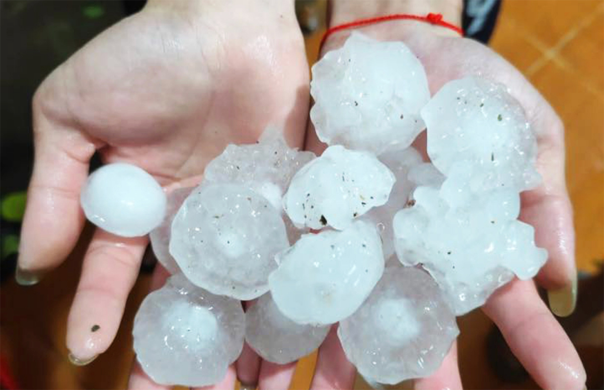 Mưa đá xuất hiện nhiều nơi ở miền Bắc.