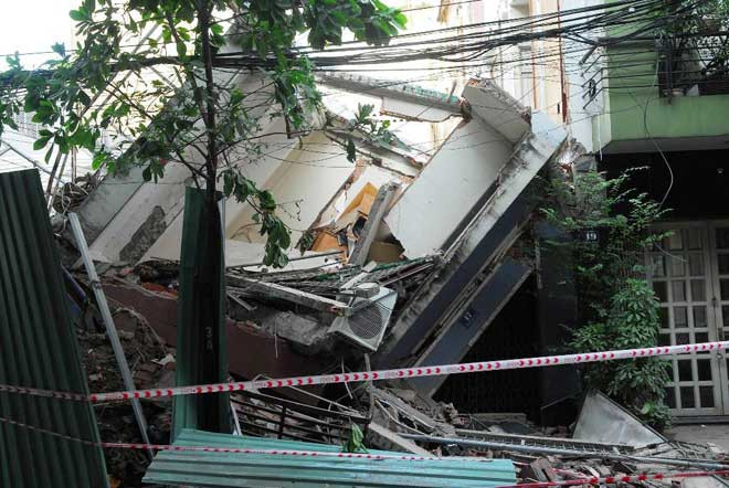 Hiện trường ngôi nhà bị sập.