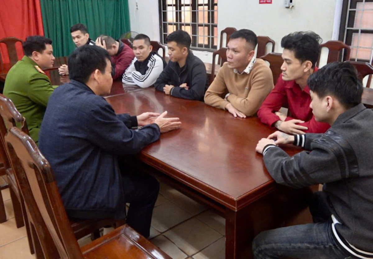Công an quận Thuận Hoá làm việc với 7 người bị tạm giữ do liên quan đến vụ ẩu đả tại quán Pub Beer Quận 1. (Ảnh: CA)