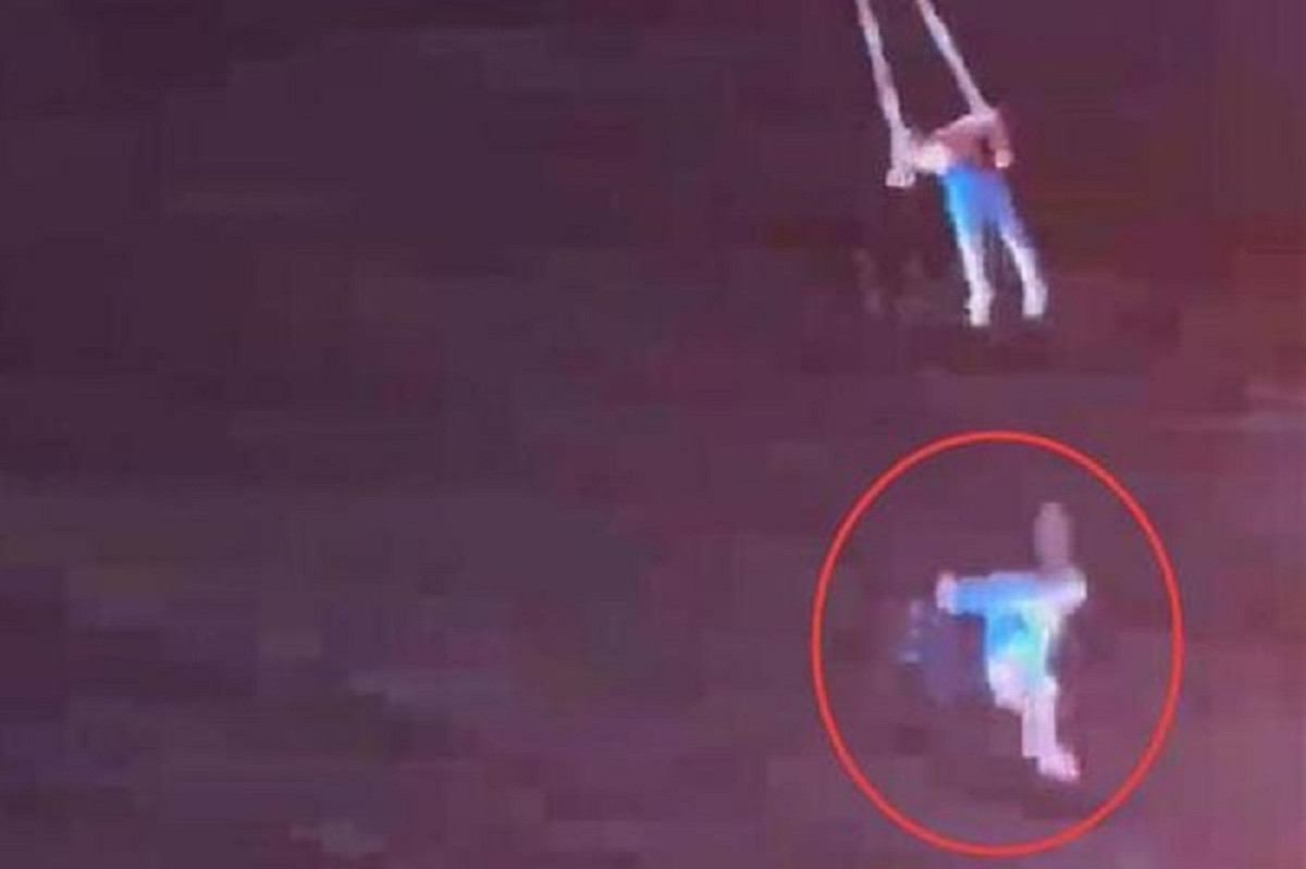 Hình ảnh nữ diễn viên xiếc rơi từ độ cao 10 m. Ảnh: 163.