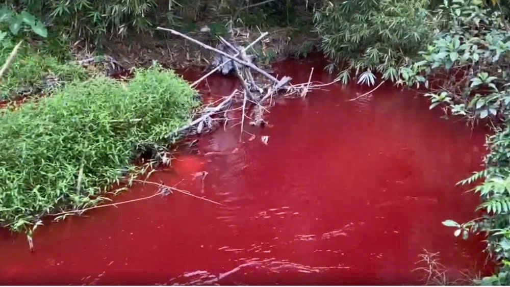 Nước suối bị nhuộm đỏ khiến người dân lo lắng (ảnh: MXH)