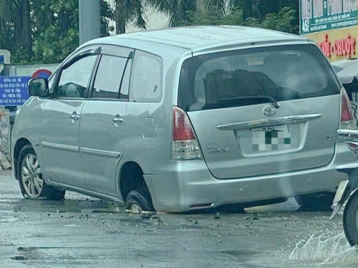 Ô tô sụt 'hố tử thần' ở ngã tư Nguyễn Chí Thanh - Đê La Thành chiều 16/8.