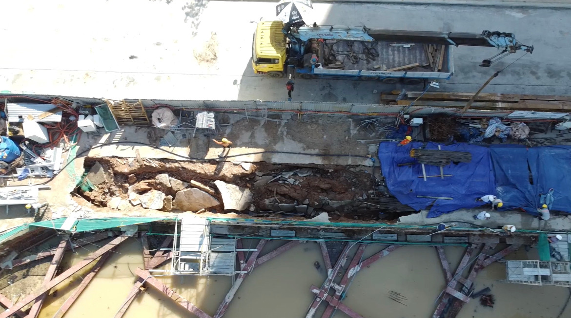 Đường ống cống bục khiến bùn đất tràn vào dự án, gây ra sụt lún vỉa hè, nền đường Hoàng Văn Thụ, kéo theo đó trụ điện trung thế bị nghiêng đổ và hư hỏng một số hạng mục hạ tầng kỹ thuật trên vỉa hè.