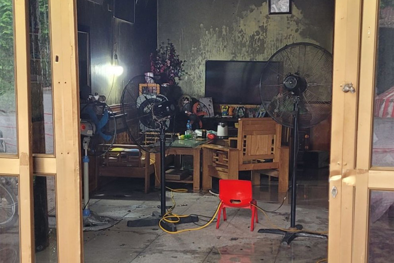Vụ cháy khiến 1 xe đạp điện, 1 máy giặt ở tầng 1 và giường, tủ ở phòng ngủ tầng 2 bị thiêu rụi.