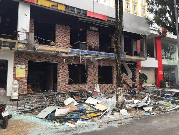 Tuy nhiên, vụ nổ đã làm sập toàn bộ hệ thống vách, cửa kính và biển quảng cáo của quán. Nhiều ngôi nhà cách đó khoảng 100m ở phường Hồng Sơn, Lê Mao cũng bị vỡ kính bắn tung tóe.