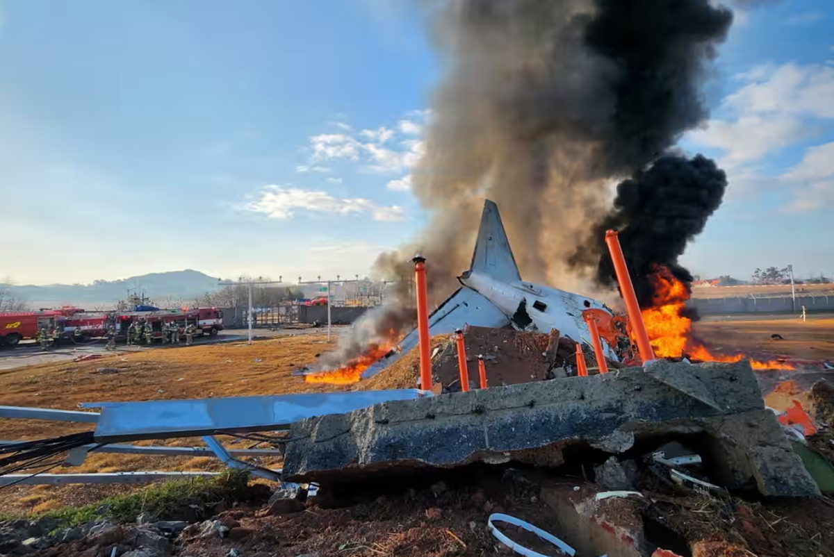Hiện trường vụ tai nạn máy bay ở Hàn Quốc ngày 29/12. (Ảnh: Reuters)