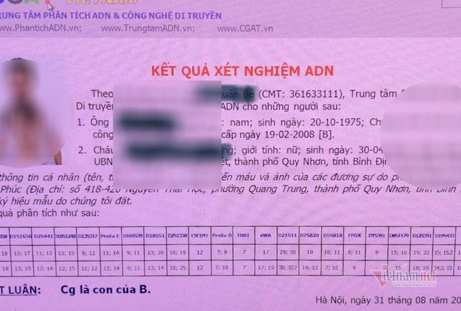Kết quả xét nghiệm ADN.