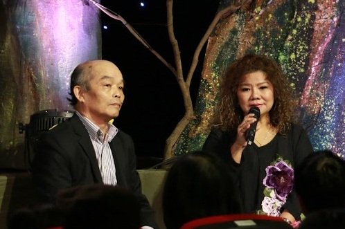 Ông Đoàn Việt Trung và NSND Thanh Hoa giao lưu với khán giả.