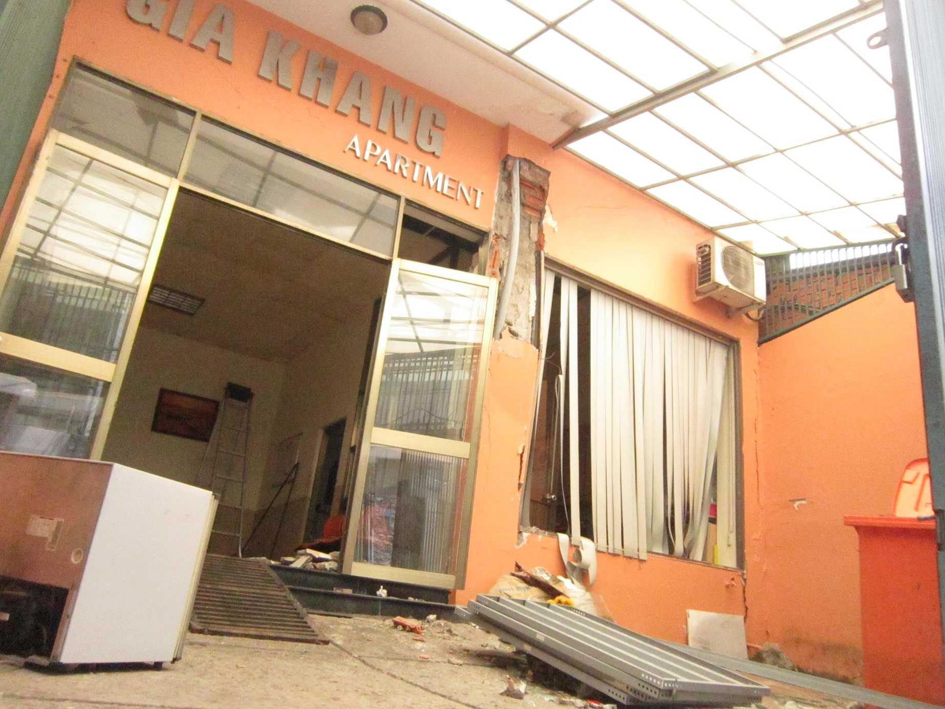 Tại hiện trường, trên tường tầng trệt ngôi nhà xuất hiện nhiều vết nứt. Dưới nền nhà ngổn ngang những khối bê tông và cửa kính ngôi nhà bị vỡ vụn.