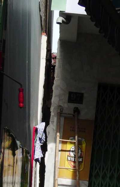 Ghi nhận tại hiện trường phần vách liền kề của căn nhà này với nhà dân bên cạnh đã tách rời khoảng 50 cm, phần trên cùng kéo dài xuống chân tường.