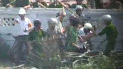 | Hình ảnh công an và dân phòng hành hung hai nhà báo VOV cắt ra từ clip. |