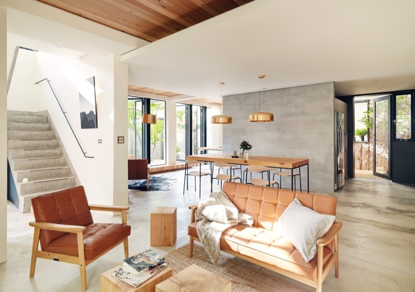 Được biết, chủ nhà là một người rất hiếu khách và thường xuyên tụ tập với bạn bè và gia đình nên kiến trúc sư đã thiết kế toàn bộ tầng 1 là phòng khách rộng lớn, phòng ăn, nhà bếp và khu vực đọc sách. Bức tường lớn tại tầng 1 đã được phá hủy để thay bằng hệ thống cửa trượt bằng kính trong suốt, giúp người ngồi trong nhà có thể nhìn ngắm cảnh quan bên ngoài, đồng thời tạo không gian mở để đón ánh sáng và gió tự nhiên vào trong căn phòng.