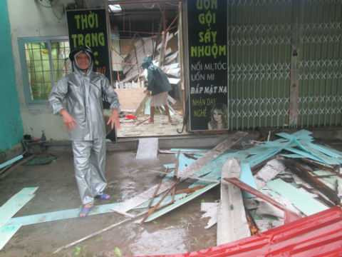 “Hai gian nhà của tôi đã bị tốc mái hoàn toàn. Trong đó có một gian nhà chúng tôi mới mở tiệm cắt tóc, gội đầu. Do bị tốc mái nên một số máy móc và đồ điện tử trong nhà đã bị hỏng, ước tính giá trị thiệt hại khoảng 40 triệu đồng. Nhưng điều may mắn là các thành viên trong gia đình tôi không bị thương tích gì,” ông Vượng chia sẻ.