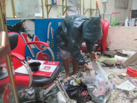 | Thu dọn nhà cửa, nhặt nhạnh những gì còn sót lại sau khi bị bão phá nhà. |