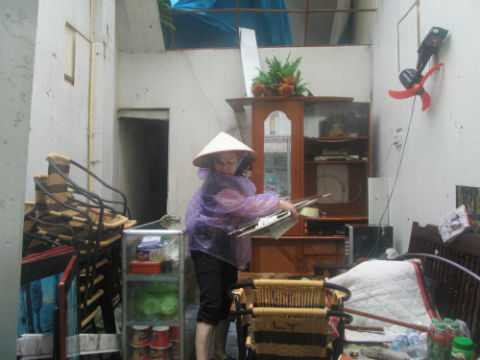 Gia đình anh Trung cũng là một trong những hộ bị gió bão hất tung mái nhà, cửa kính vỡ tan. Phần lớn đồ đạc trong nhà đã bị nước mưa làm hư hỏng. Cũng như nhiều hộ dân mất nhà khác, có thể tối nay gia đình anh Trung phải tạm thời đi ở nhờ gia đình người quen.