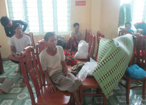 | Những người dân trú bão tại trụ UBND phường Bình Ngọc (TP Móng Cái) mong ngóng giờ phút được trở về nhà sau bão. |