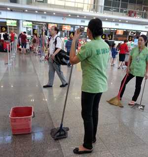 Theo phản ánh của hành khách, vào thời điểm trên, tại khu D, tầng 2 nhà ga đi, khi cơn mưa lớn xuất hiện đã khiến nước từ trên mái chảy xuống sàn lênh láng. Trước sự việc, đơn vị khai thác đã phải bố trí 2 nhân viên túc trực thường xuyên để hứng nước mưa, lau chùi và hướng dẫn hành khách để tránh bị trượt.
