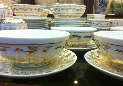 Trước đây, dư luận đã từng sửng sốt trước việc một nhà hàng ở Hà Nội có sáng kiến đưa vào thực đơn những món ăn... có bột vàng nghiền. Thì nay, dân Hà Nội lại đang có mốt dùng đồ gốm vẽ vàng.