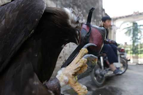 | Muốn tập cho chúng bay về tay phải để cho chúng đói, khi đó gọi về tay mới dễ dàng. Hiện tại, hai chú đại bàng này vừa mới qua thời kỳ thay lông, một năm thay lông một lần. Khi mới nhập về lông của chúng có màu vàng, đến giờ lông đã sang màu nâu, rất mượt. |