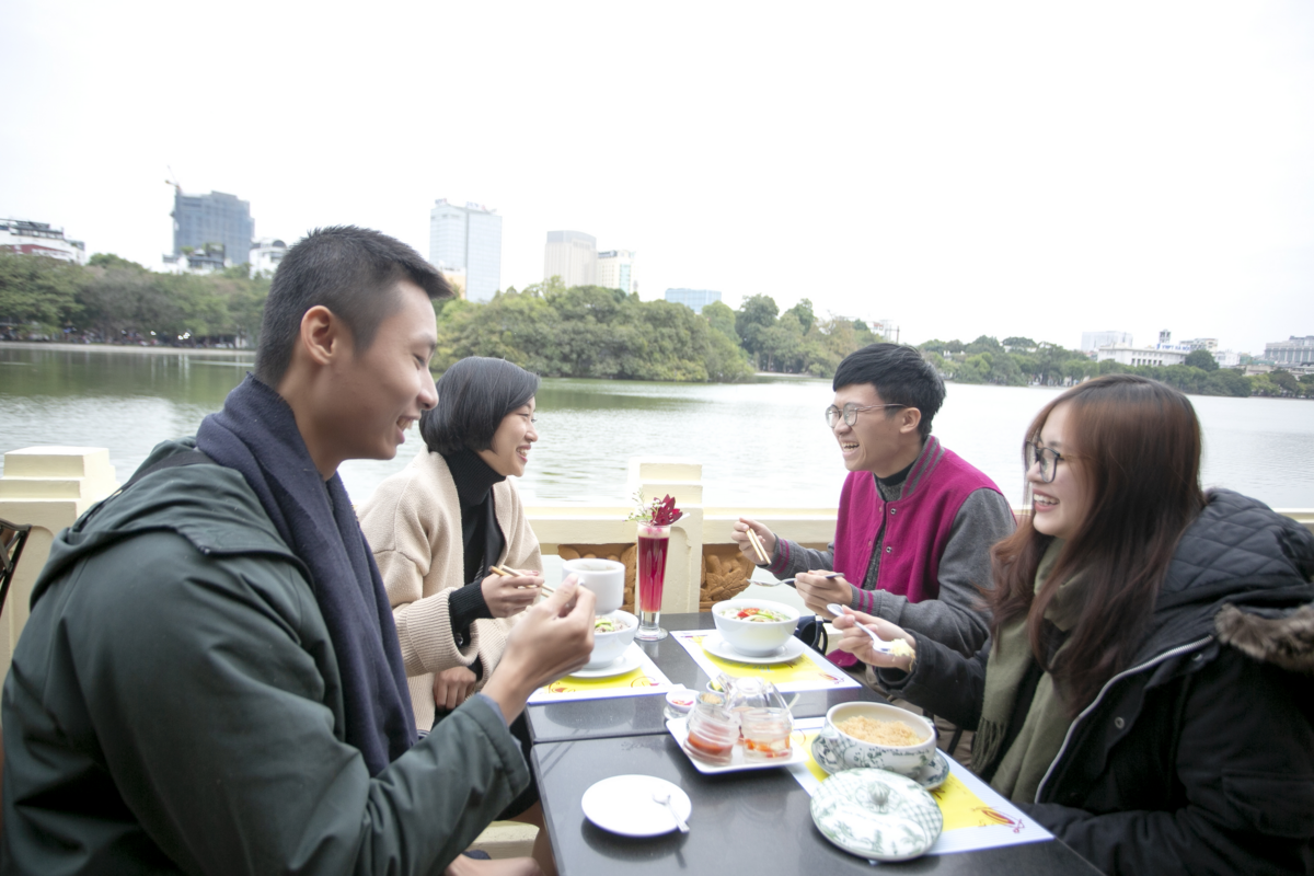 Đối với các bạn trẻ, tình yêu với Hà Nội được thế hệ đi trước thắp lên thông qua những câu chuyện từ tuổi thơ, thấm dần qua năm tháng, mà chỉ khi đi học và làm việc xa Hà Nội một thời gian, các bạn mới cảm nhận được nỗi nhớ, tình yêu Hà Nội một cách rõ rệt đến thế. “Đến với Nhà hàng Thủy Tạ, ngồi trong không gian yên bình bên bờ Hồ Hoàn Kiếm, tôi thưởng thức bát Phở Hà Nội để nhớ về hương vị bà nội mình nấu khi xưa”, Phong - một chàng trai trong nhóm bạn trẻ chia sẻ.