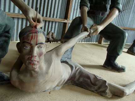 | Đóng đinh vào đầu để giết hại tù binh cộng sản. |