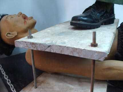 Những ngón đòn mà chỉ cần nhắc đến, nhiều người cũng phải rùng mình khiếp đảm: dùng chày đập nát vụn mắt cá chân, đục từng miếng xương bánh chè, dùng ván gỗ và đinh vít ép vỡ lồng ngực, tẩm dầu đốt cháy vùng kín, luộc người trong chảo nước sôi hay nướng người trên lửa than rực hồng…