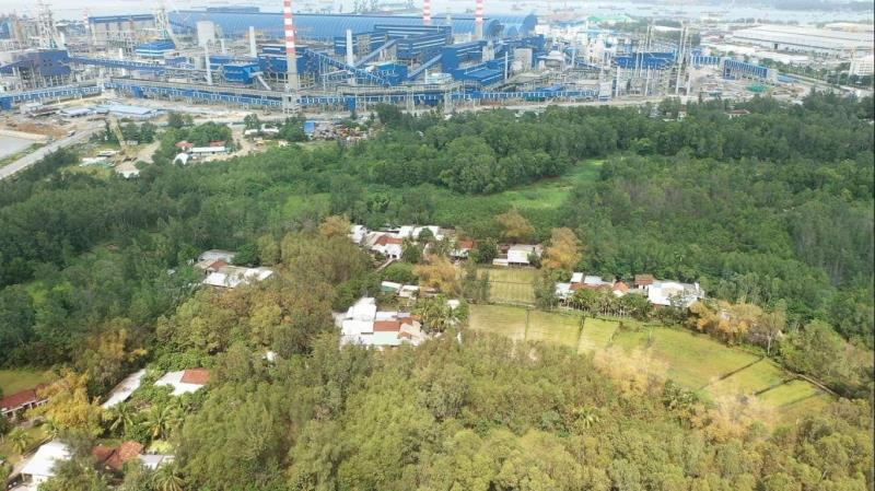 Khu vực xuất hiện mùi hôi, khét được cho là bắt nguồn từ nhà máy thép Hòa Phát Dung Quất. (Ảnh: H.N)