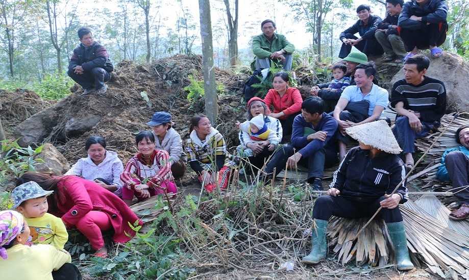 Hàng trăm người dân từ già đến trẻ đã bỏ việc đồng áng, đồng loạt kéo nhau lên núi để phản đối việc thi công, xây dựng nhà máy. Thậm chí, một số phụ nữ còn bồng bế cả con, cháu đi theo để gây áp lực.