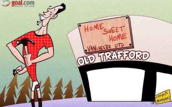 Không bỏ quên tiền đạo 29 tuổi này, họa sĩ biếm họa Omar Momani đã nhanh tay "giúp" đóng biển định cư tại Old Trafford kèm lời bình: "Không đâu bằng nhà mình"!