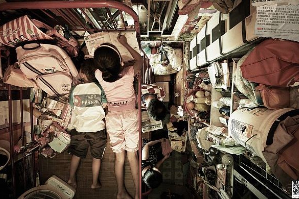 Không gian sống chật chội từ lâu đã trở thành vấn đề ở Hong Kong. Người có thu nhập thấp sống trong “nhà quan tài” hay “nhà lồng” - nơi không gian được chia nhỏ, khoảng dưới 3 m2, cho mỗi cá nhân đủ kê chỗ ngủ và một ít đồ đạc cơ bản; hàng xóm kế cận chỉ cách vài bước chân; phòng tắm chủ yếu được dùng chung, thường không có nhà bếp. Các phòng chủ yếu được ngăn cách bởi các “bức tường” tạm bợ hoặc di động.