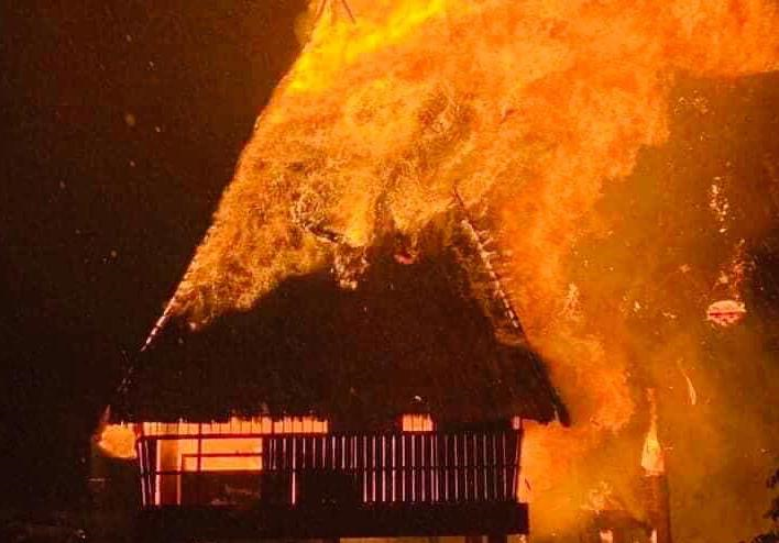 Do được làm bằng các vật liệu bắt lửa, dễ cháy nên chỉ sau vài chục phút ngọn lửa đã thiêu rụi toàn bộ nhà rông.